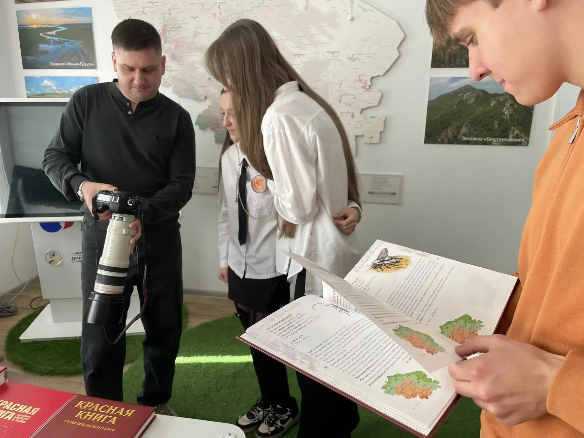 Диалоги о природе В экологическом классе Дирекции особо охраняемых природных территорий Ставропольского края состоялась встреча будущих журналистов с государственными инспекторами отдела по обеспечению режима охраны и функционирования ООПТ. Учащиеся медиакласса школы №47 города Ставрополя получили уникальную возможность из первых уст узнать о природоохранной работе на заповедных территориях нашего края. Несмотря на то, что в рамках сотрудничества со школой для ребят регулярно проводятся различные эколого-просветительские уроки, эта встреча стала для них действительно особенной. Узнать секреты и тонкости заповедного дела будущие журналисты смогли в беседе с сотрудниками, которые посвятили этой профессии много лет. Встречу открыл директор Андрей Геннадьевич Голубев, рассказавший ребятам об истории создания учреждения и его основных задачах. О том, как проводятся биотехнические мероприятия на заповедных территориях, рассказал государственный инспектор Алексей Иванович Хворостов. Он объяснил важность организации зимней подкормки диких животных, их вакцинации, а также проведения различных учетов численности и мониторинга популяций основных видов фауны. Сергей Николаевич Шапранов, государственный инспектор на территории заказников «Удачный» и «Вишневая поляна», ответил на вопросы ребят о рабочих буднях: проведении рейдов по обеспечению природоохранного режима территорий, работе с населением по предупреждению правонарушений. Государственный инспектор самого большого в крае природного заказника «Александровский» Валентин Валентинович Низов рассказал о действующей в заказнике экологической тропе и поделился с учащимися секретами своего давнего увлечения – фотосъемки дикой природы, раскрыв профессиональные хитрости наблюдения за заповедными обитателями. Увлекательное живое общение и дружеская атмосфера покорили юных журналистов. Подобные мероприятия помогают ребятам не только расширить кругозор, но и увидеть себя в будущей профессии, а самое главное – укрепить в своем сердце уважение к природному наследию.